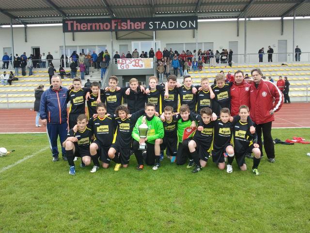 Auf dem Bild sind von links: Sören Pirson, Jeremy (D1),Sven Walzer (TW Trainer 1910), Jonas (C2) ,Aaron (C1), Patric Klandt, Nicolas (C1), Nico (B1), Pierre Kleinheider, Norbert Lorz (TW Trainer FSV I).